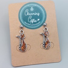 Ginger Kitty Cat Earrings Teardrop NO TARNISHING Wood Fall Autumn Leaves Jewelry