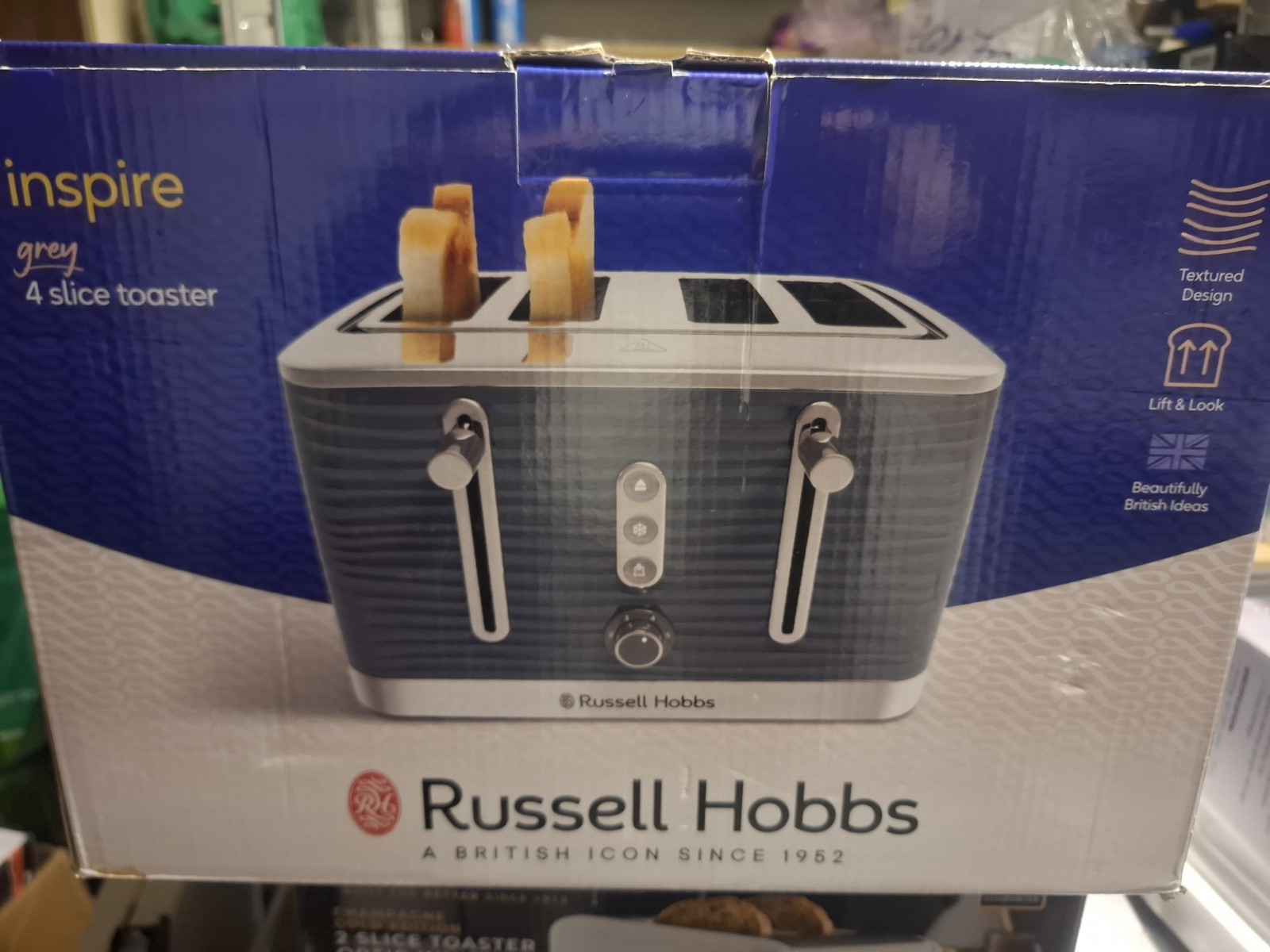 The Russell Hobbs 24383 Inspire 4 1800W Slice Toaster is a sleek and functional kitchen appliance that brings style to your breakfast or snack routine. With its four slices, variable browning control, defrost and cancel buttons, and crumb tray, this toaster offers convenience and advanced features for a perfect toasted experience every time. The grey plastic design complements any kitchen decor, while the 1800W power ensures quick and efficient toasting. Upgrade your toaster game with this reliable and modern addition to your home.