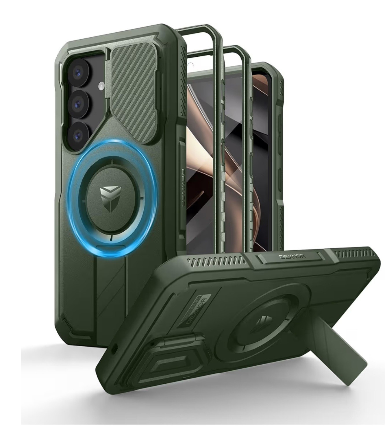 Dexnor for Samsung Galaxy S25 Case with Camera Cover & Adjustable Kickstand & Built-in Screen Protector, Magnetic Rugged Shockproof Bumper Cases Heavy-duty Magnetic Protective Cover Green