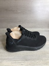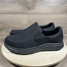 The Skechers Flex Advantage SR McAllen Work Shoe is a slip-on style loafener designed for men. It features a solid black color with a fabric and synthetic construction. The shoe is built with a rubber outsole for slip resistance, making it ideal for casual wear or work situations. With a focus on comfort and style, this shoe is a practical choice for everyday wear.
