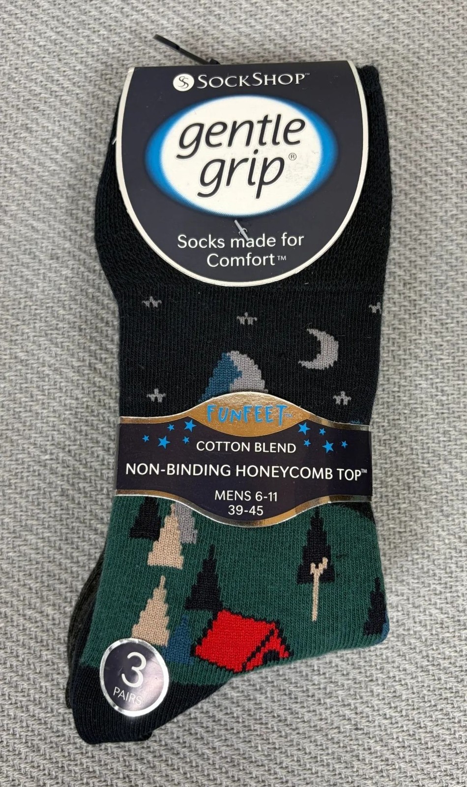 SockShop Mens Gentle Grip Funfeet Socks 3 Pack UK 6-11 Cotton Non-Binding