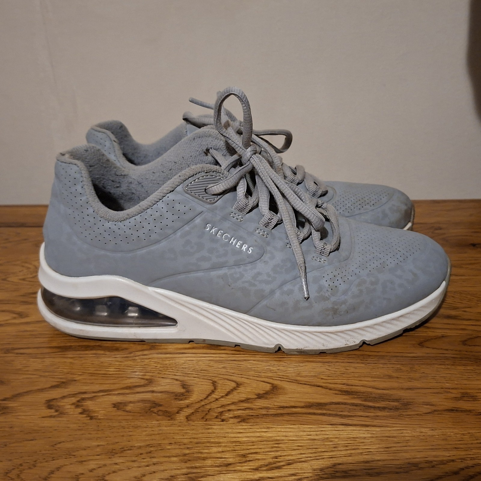 Gorgeous comfy memory foam size 4.5 Skechers trainers. Unusual animal print to the grey uppers. Very slight wear to heel but hardly noticeable. Also listed elsewhere so may end early