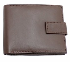Leather wallet with built in RFID card protection. 1 coin pocket with flap and button closure.