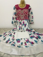 Beautiful frock with nice stitched works and gorgeous pattern on the hemline. It is a really beautiful Turquoise/Blue and colour. Fantastic for party wear. Comfortable and easy to wear. Long sleeves.
