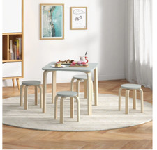 5-Piece Kids Table and Chair Set Children Wooden Activity Table 4 Curved Chairs