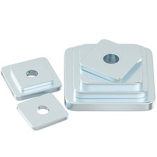 Bright Zinc plated 50 mm x 50 mm square steel washer in 2 mm & 3 mm Thickness. hole size ( i.D).