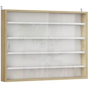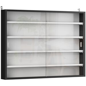 ● Four shelves can be set to 7 different positions - room for both small and large objects. • Glass doors: Both move to the side, allowing easy access inside, whilst keeping everything protected. Smooth groove handles for opening and closing.