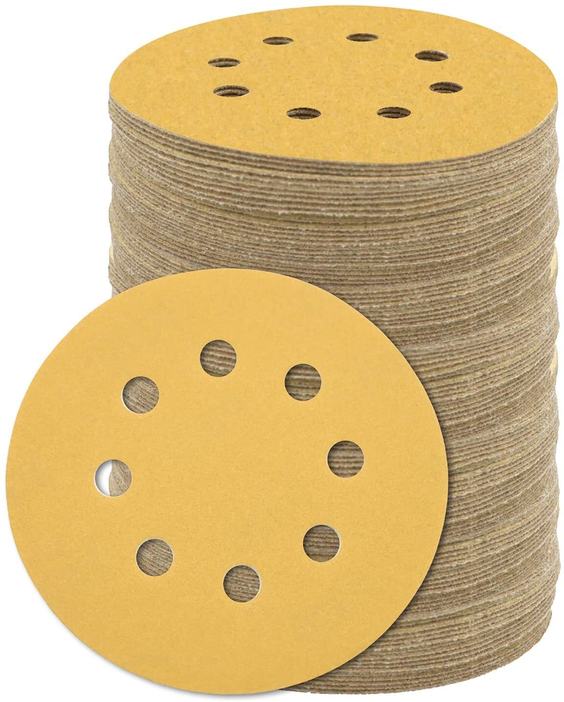 50PCS 125MM GOLD SANDING DISCS 8 HOLE 5 INCH HOOK AND LOOP 150 GRIT FOR METAL