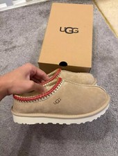 UGG Tasman Sand / Dark Cherry Suede Fur Slippers Womens Size 8 *NIB*
