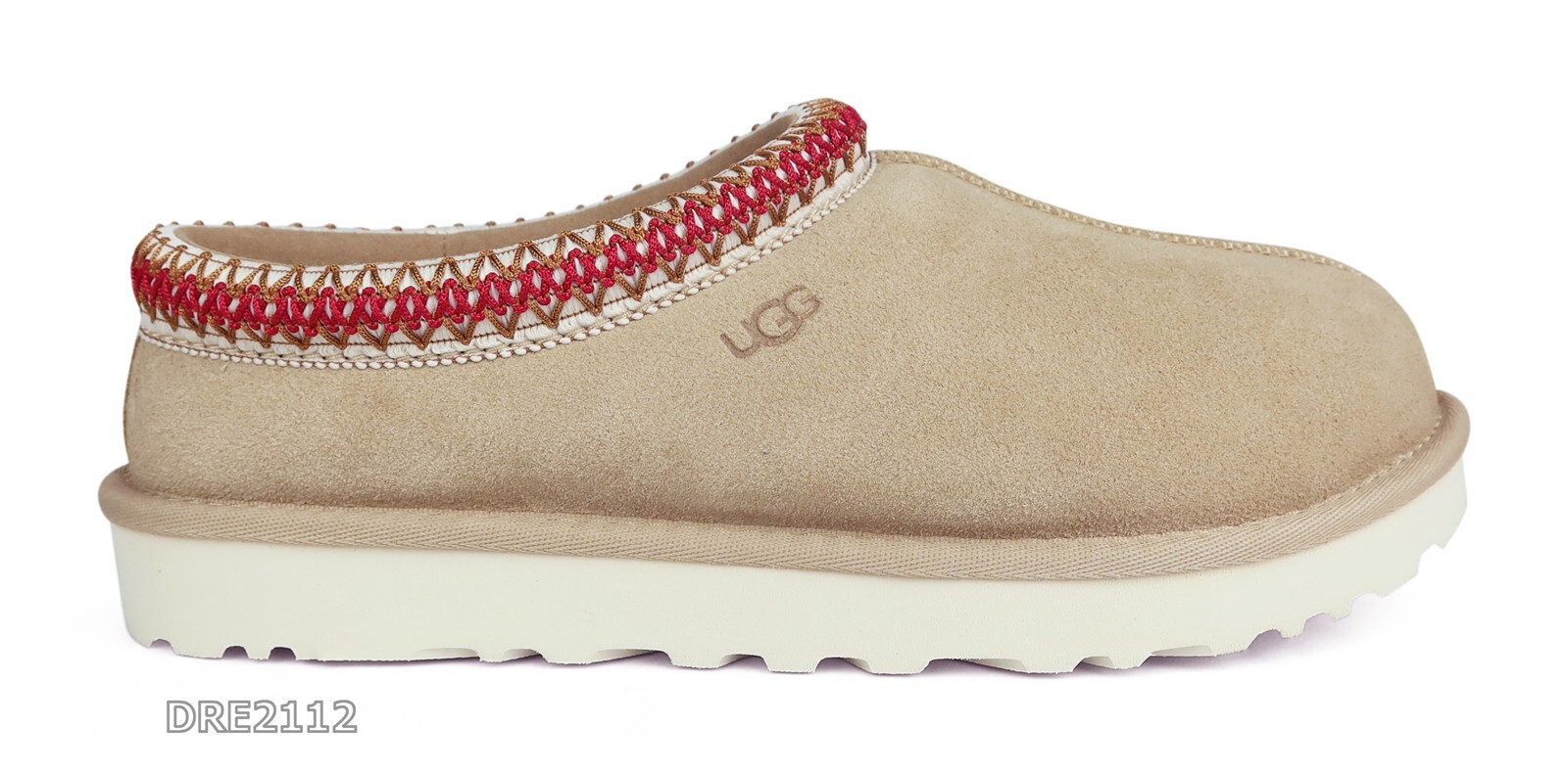 Suede upper with tasman braid ankle stitch detail. 100% Authentic UGG. UGG authenticity label in left shoe. Color: Sand / Dark Cherry (very rare color!). Style Number: 5955.