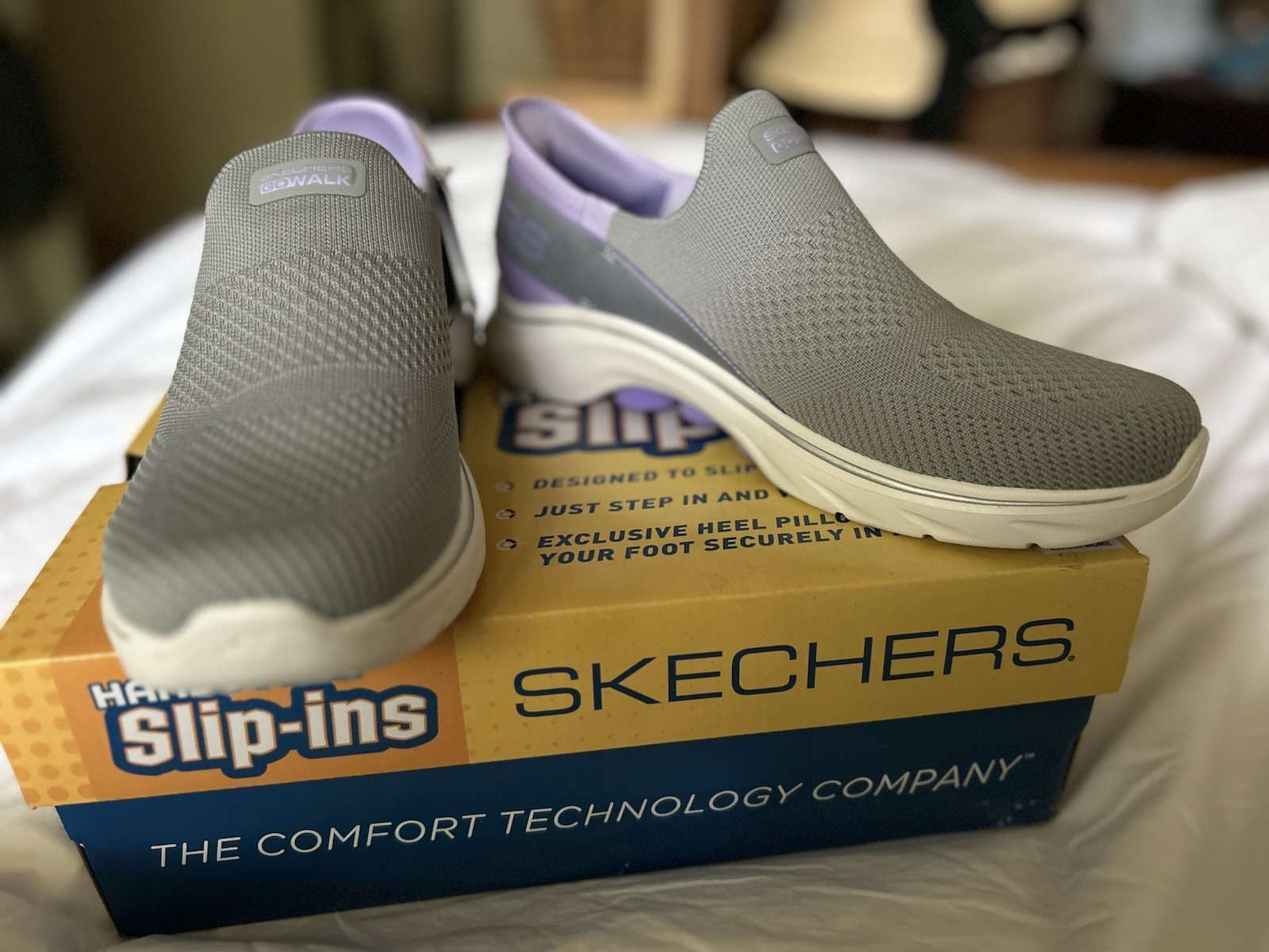 New and unused Slip Ins. No more bending! These trainers are extremely comfortable I have them in many colours. I bought these ones in error as they are the wrong size for me. They have air cooled memory foam and can be machine washed. Can only post Thursday to Saturday and sorry, I don’t accept returns.