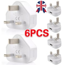 6 Pack UK USB Wall Charger 3 Pin Plug Mains Adapter For Phones, Tablets Power-