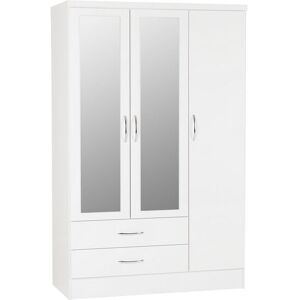 NEVADA WHITE GLOSS 2 DOOR 1 DRAWER MIRRORED WARDROBE