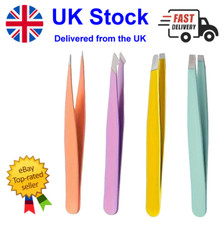 SET OF FOUR TWEEZERS LONG FLAT THIN ROUNDED SELF CLOSING BENT NOSE PRECISION UK