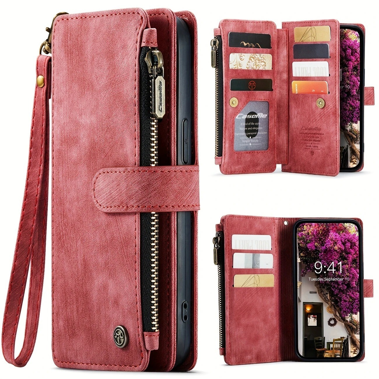 Zip Wallet Case Leather Flip Purse Card Stand Cover for iPhone 16 15 14 13 12 11