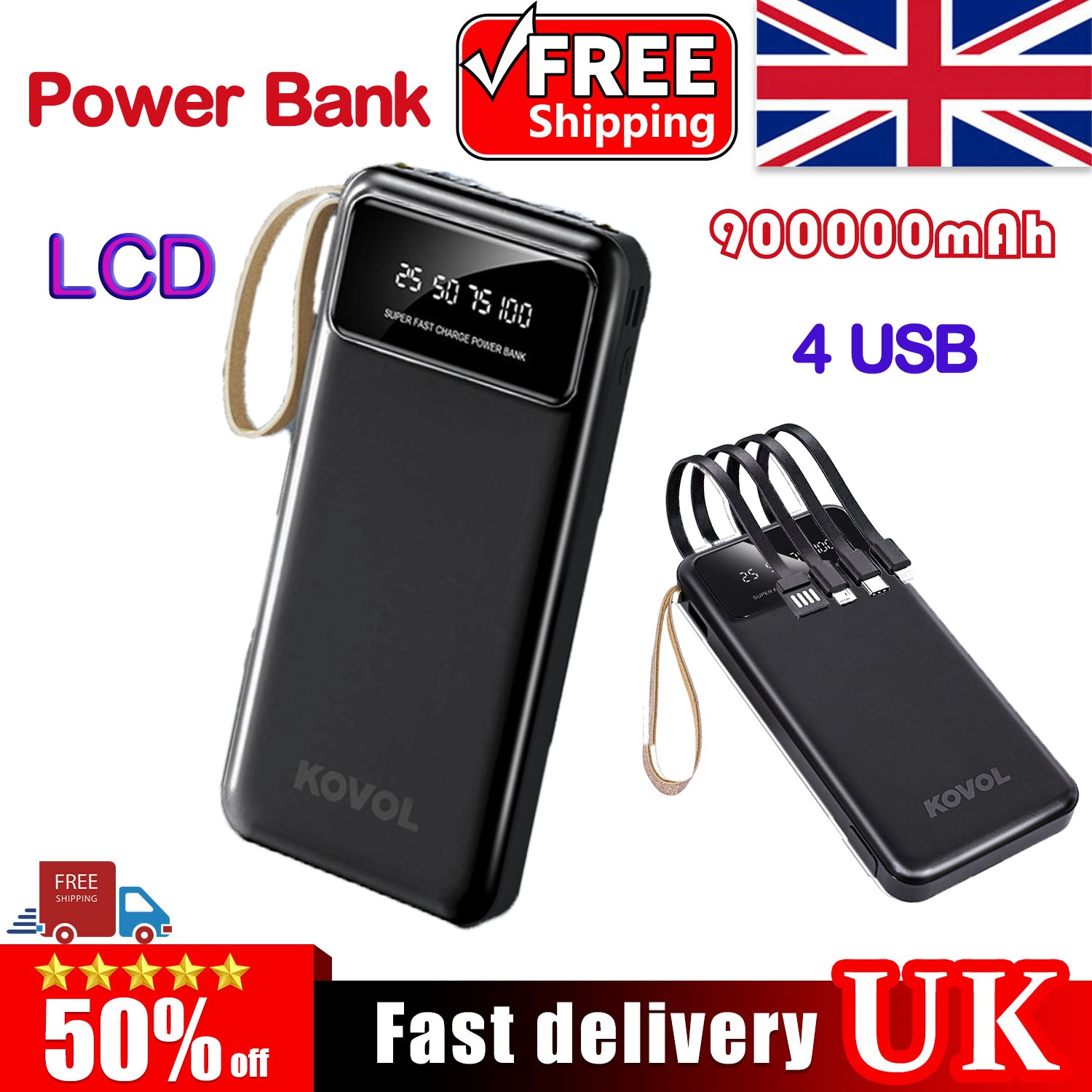 Power Bank 9000000mAh Pack Fast Charger 4-USB External Battery For Mobile Phone✅