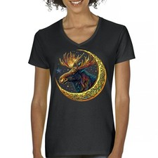 Women's Moose Moon Print Cotton T-Shirt Size S to 3XL