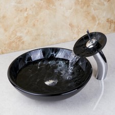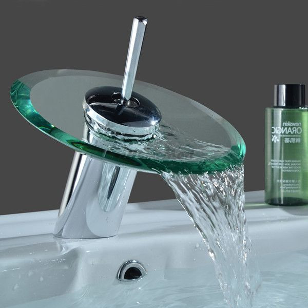 Chrome Round Glass Waterfall Glass Mixer Tap Bathroom Basin Sink Faucet 116
