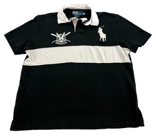 The Polo Ralph Lauren Rowing Club RLFC Skull Bones Rugby Cardigan Sweater in size 2XLT is a stylish and versatile piece for men. Made of cotton with a solid black color, this long sleeve sweater features a collared neckline and embroidered logo accents. Perfect for various occasions such as travel, parties, casual outings, or formal events, this cardigan offers a preppy and classic look with a hint of skull theme, making it a standout addition to any wardrobe. With a regular fit and big & tall size type, this sweater is both comfortable and fashionable for the winter, fall, and spring seasons.