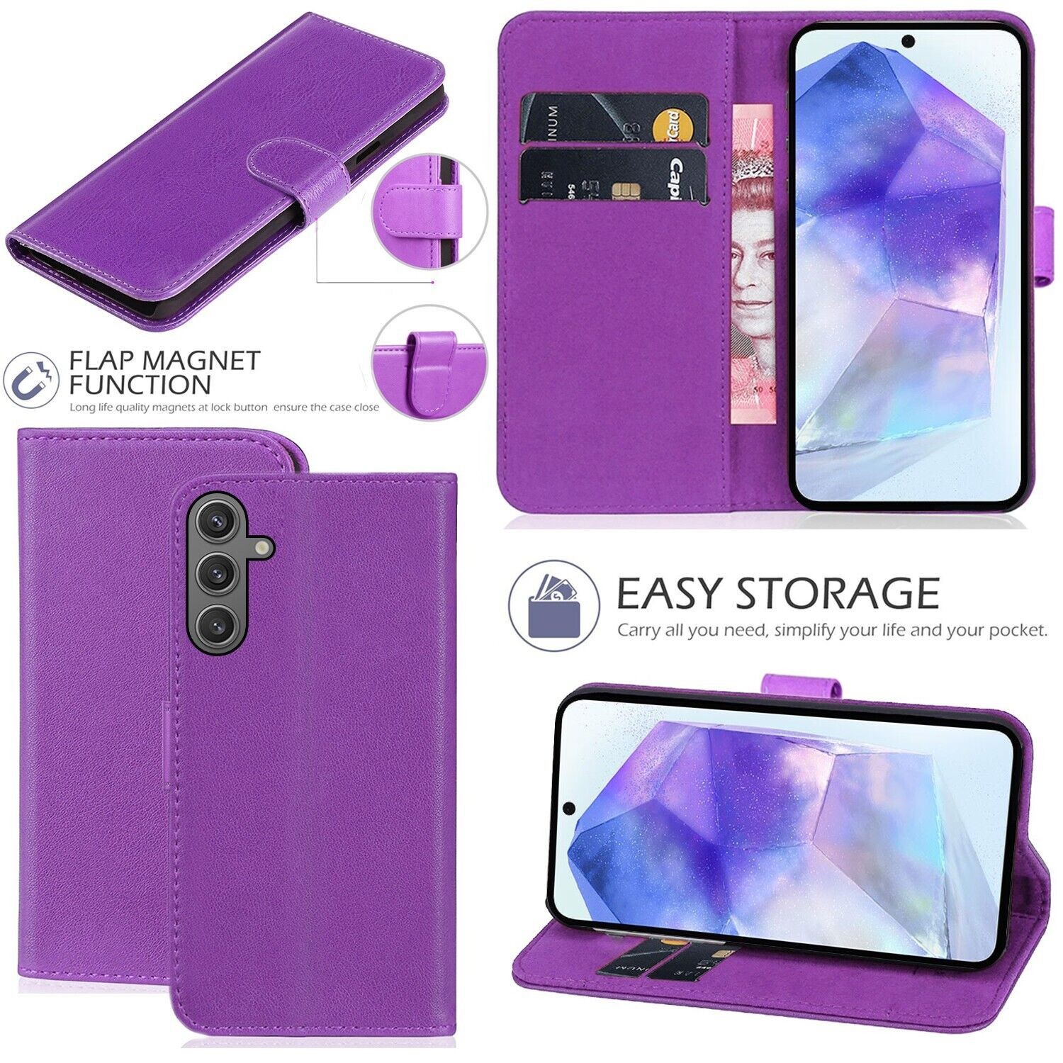 For Samsung Galaxy A17 A16 A15 A14 A26 A56 Case PU Leather Wallet Phone Cover