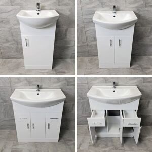 Includes high quality 1 tap hole ceramic basin. 850 unit & basin: W:855mm x D:510mm x H:875mm. 450 unit & basin: W:450mm x D:400mm x H:875mm. 550 unit & basin: W:550mm x D:435mm x H:865mm. 650 unit & basin: W:655mm x D:465mm x H:875mm.