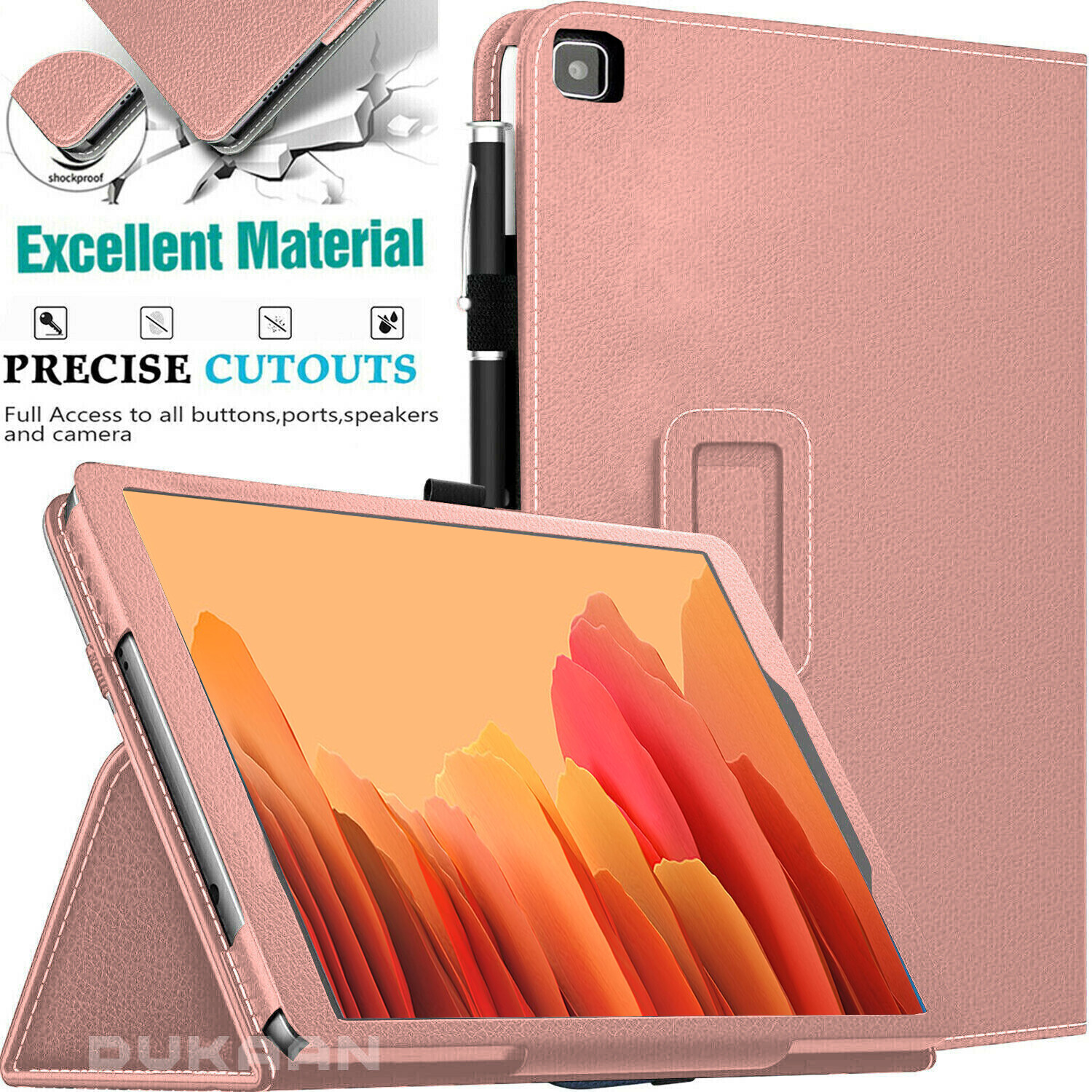 1 x Premium PU Leather Flip Case (with free touch screen Stylus pen) . - Landscape movie viewing stand. (Case Only, tablet not included). So you never need to remove your tablet from its case. Built from durable PU (synthetic) leather with soft Microfiber interior to prevent scratches.