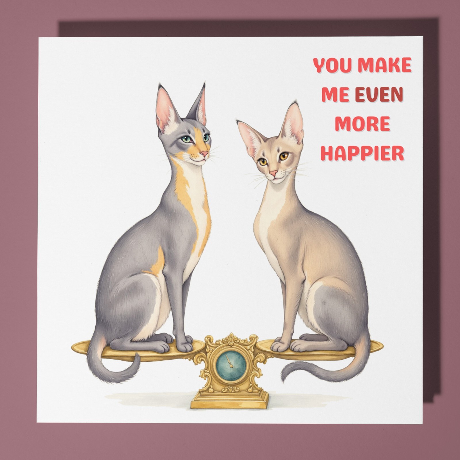 Cute cats love Card & Envelope - Personalised cat card wife husband girlfriend