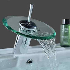 Deck Mount Waterfall Glass Faucet Single Handle Bathroom Basin Sink Mixer Tap