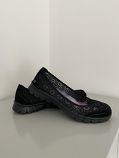 These Skechers Women's Slip-On Memory Shoes in UK size 6 are perfect for casual occasions during the summer season. The low-top sneakers feature a round toe shape with a slip-on closure for easy wear. The flat heel and rubber outsole provide comfort and stability for walking activities. The black and gold colour and logo accents give the shoes a stylish look, while the foam insole ensures a pleasant fit. Made with synthetic upper material and foam insole, these Skechers shoes are a reliable choice for everyday wear.