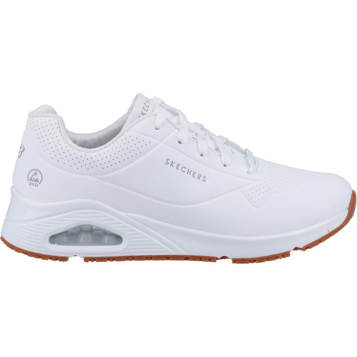 Skechers Workwear Work Relaxed Fit: Uno SR Safety Shoe White. EH Safe design tested ASTM F2892-11. Slip-resistant rubber traction outsole. Inside Leg (cm) 79 80 81 82 83 84 84 84 84 84 84. Size XS S M L XL 2XL 3XL 4XL 5XL 6XL 7XL.