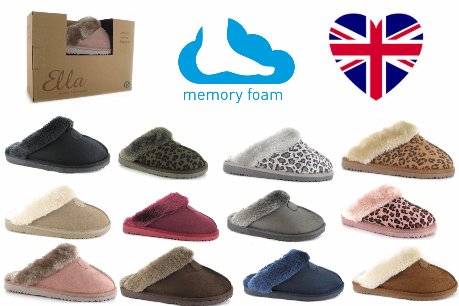 ELLA JILL LADIES MULE MEMORY FOAM LUXURY SLIPPER NEW FUR SPARKLE WARM GIRLS NEW