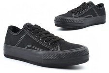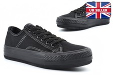 LADIES THICK SOLE CANVAS PUMPS NEW WOMENS RUBBER SOLE TRAINERS SHOE