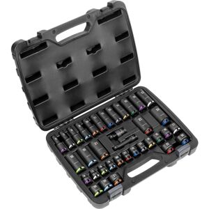 Standard depth 6-point WallDrive sockets allows a transfer of up to 30% more torque to the fixing. Colour-coded rings and enlarged socket size text for fast identification. Contents: Standard Sockets; 6, 7, 8, 9, 10, 11, 12, 13, 14, 15, 16, 17, 18, 19, 21, 22, 24mm, Deep Sockets; 6, 7, 8, 9, 10, 11, 12, 13, 14, 15, 16, 17, 18, 19, 21, 22, 24mm, 75mm Extension Bar, Universal Joint.