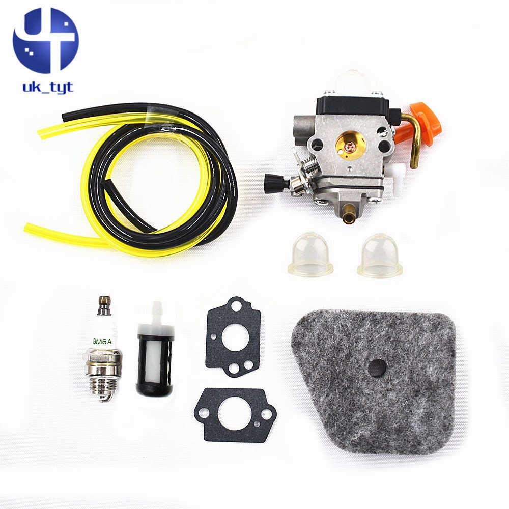 Description Interchange Part Number Zama C1Q-S110D , C1Q-S88 , C1Q-S110C 4180-120-0610 , 4180-120-0611 , 4180-120-0613 Fits For FC100, FC110, FC90, FC95, FS87, FS87R, FS90, FS90R, FS100, FS100R, FS110, FS110R, FR130T, FS130, FS130R, HL100, HL100K, HL90K, HL95, HL95K, HT100, HT101, HT130, HT131, KM100, KM100, KM110, KM110, KM90, KM90R, KM130, KM130R, SP-90 You Will Receive : 1 carburetor 1 air filter 2 feet fuel line 2 primer bulbs 2 gaskets 1 fuel filter 1 For Spark plug .