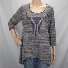 Zig Zag patterned Loose Top. Ladies Blue Vanilla Silver oversized. Chest - underarm to under arm laid flat approx 26". Length - back of neck to hem 29".
