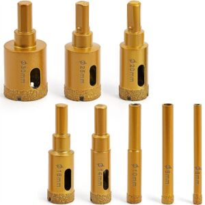The dry diamond drill bit uses vacuum brazed technology which allows the dry bit to be used at a higher temperature to cut through hard porcelain tile, ceramics, marble and slate with ease. - Vacuum Brazed Diamond drilling bits, Dry drilling granite & marble, masonry, concrete, tile/ceramic, glass, hard plastic.