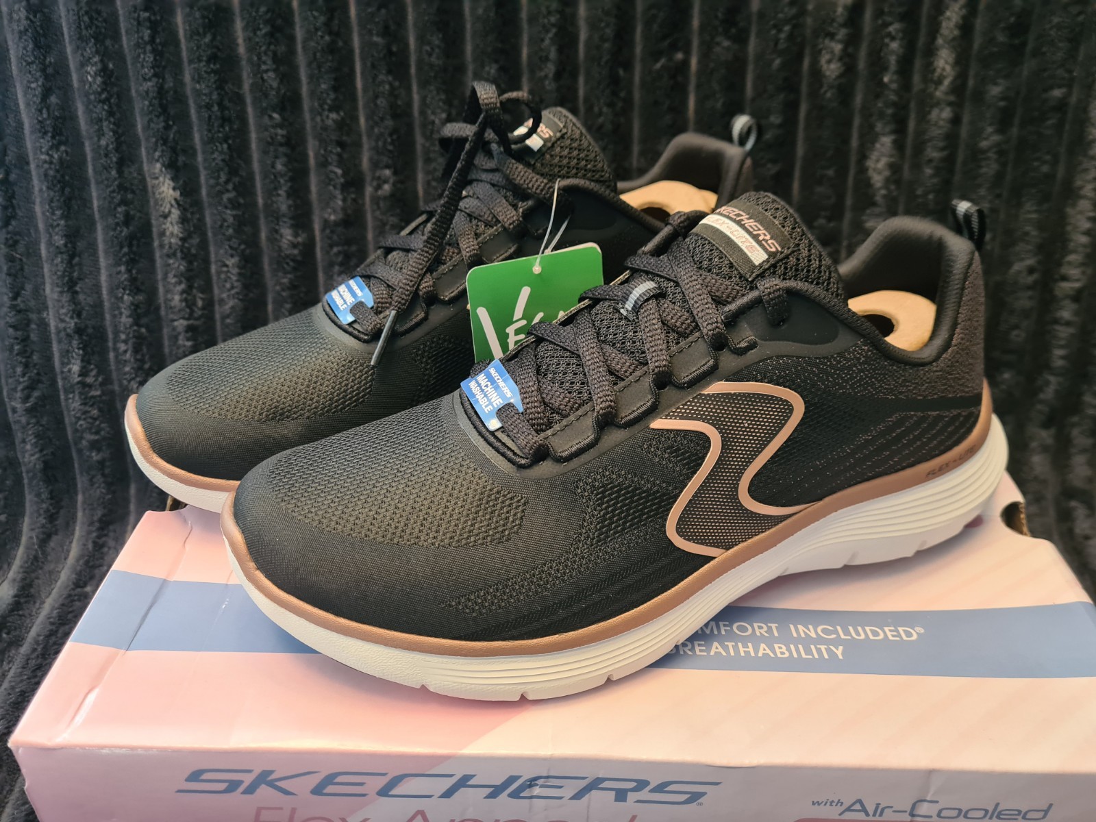 Skechers Flex Appeal 5.0 - Luxe Glow trainers in Black/Rose Gold