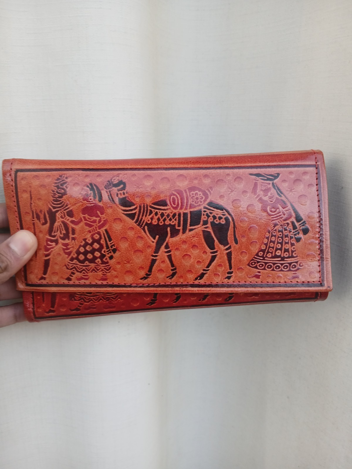 Handmade Genuine Leather Wallet Ethnic Indian Art Embossed Red Long Wallet Women