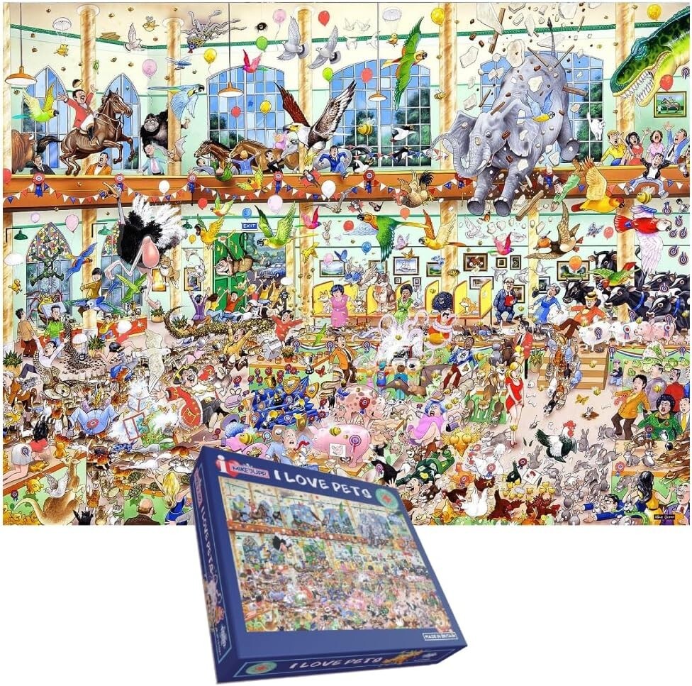 Mike Jupp I Love Pets 1000 Piece Jigsaw Puzzle. ‘I Love Pets’ is a fantastically fun 1000-piece jigsaw puzzle from the amazing mind of Mike Jupp. Mike Jupp is one of the most beloved jigsaw puzzle artists in the world and his comical creations have been delighted puzzlers for year.