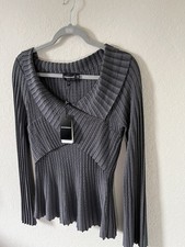 Emporio Armani Ribbed V-Neck Sweater Top Big Logo Pink Women’s Size 44