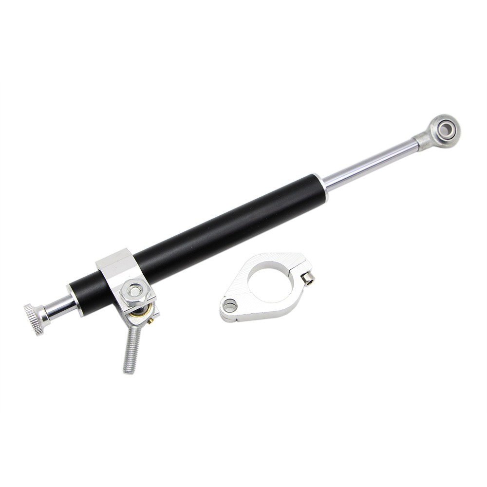Fitment: Universal fit for most of bikes (Please check size to make sure) Specifications: Condition: 100% Brand New Material: CNC 6061-T6 Aluminum and Hard Apodised Length Size: 33 cm / 12.99 inch Size: As photo shown Placement on Vehicle: Front Optional Color: Black Features: Complete damping system utilizes speed-sensitive technology. Prevent direction too flexible and increase security. Helps driver maintain balance and reduce fatigue. Easy installation without any modification required. Note: .