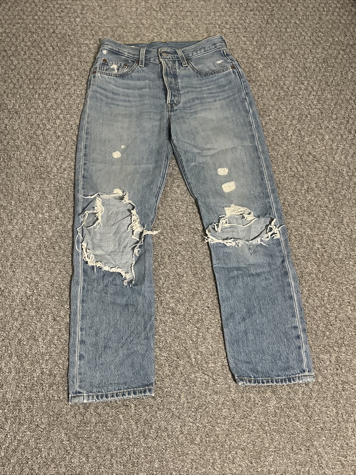 Levi's 501 Jeans Womens 24W 26L Light Wash Blue Ripped Distressed Crop Premium