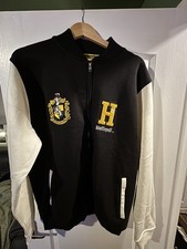 Harry Potter Hufflepuff Varsity Snap Jacket Hooded Black Gray Cedric Diggory