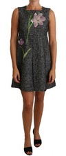 Dolce & Gabbana Gray Houndstooth Floral Appliqué Shift Mini Women's Dress
