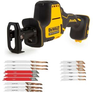 The Dewalt 18V Sub Compact Reciprocating Saw Bare Unit is an ideal cordless recip saw for trade professionals as well as DIY enthusiasts, as it is durable robust and versatile. Its brushless motor means it maintains maximum power when working under load and it will have a maximum life length as its motor has less moving component to break. The Variable speed trigger gives the user the upmost control and provides smooth cutting and shaping. To increase visibility in low lighting areas this tool has a built-in LED, now there is no excuse not to finish the job. To increase the productivity of the working day it has a tool-free blade release and it is much lighter and easier to use. This is a body only, naked machine, it is not supplied with batteries .