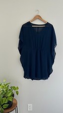Navy Overlay Mini Dress With Sequin Cuffs By Mela London UK 14 BNWT