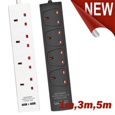 EXTRASTAR 4 Way 3M Extension Lead with 2 USB Slots, 4 Plug Extension Socket 13A