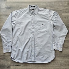 Gant Dobby Oxford Classic Fit Blue & Green Stripe Cotton Short Sleeve Shirt sz L