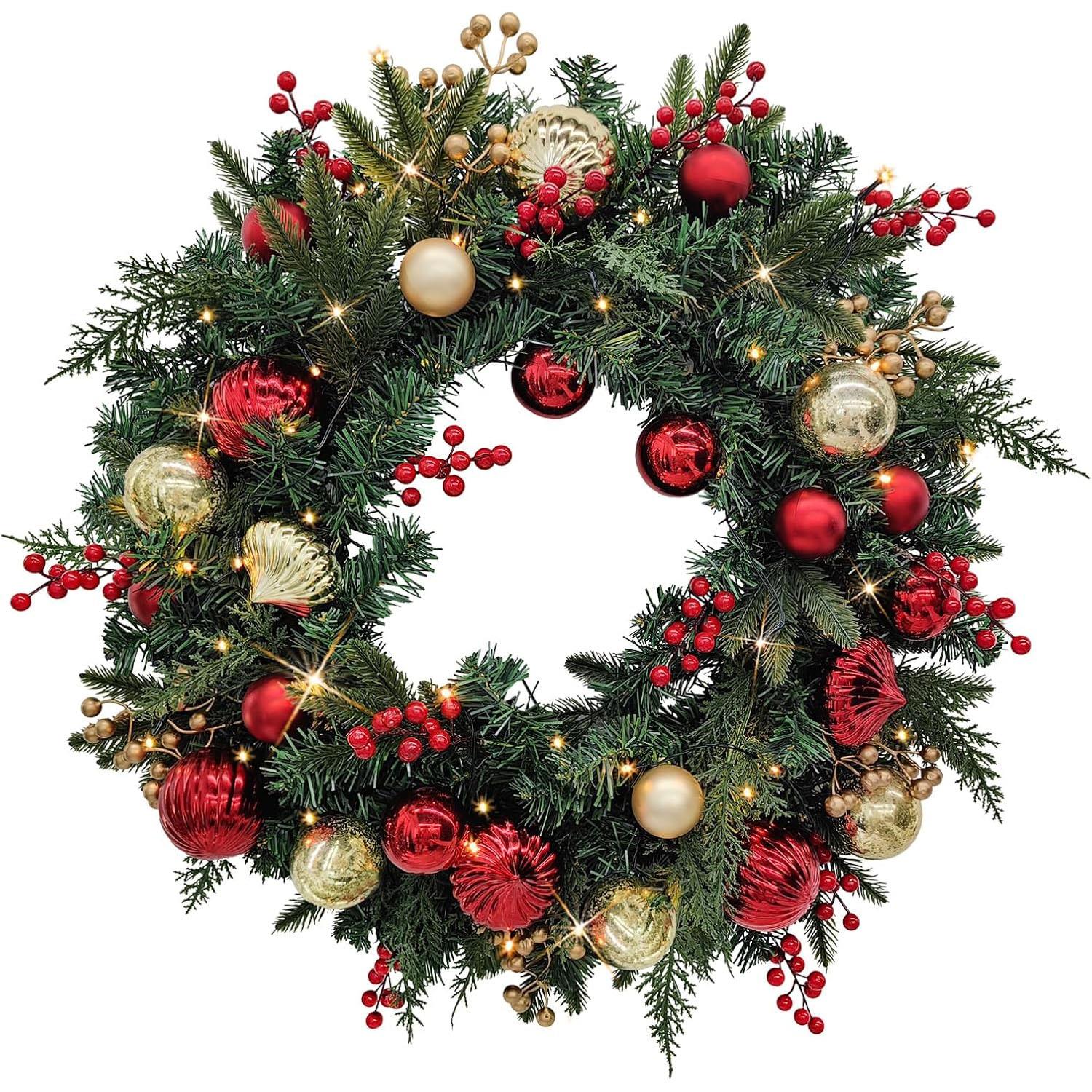 Designed with lush artificial pine branches, warm white LED lights, and eye-catching seasonal decorations, these wreaths create a stunning centerpiece for your front door, fireplace, or wall. Health & Beauty.