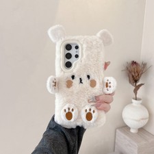 For iPhone Samsung Case Plush Cute Rabbit Warm Fluffy Phone Cover Hot Women Girl